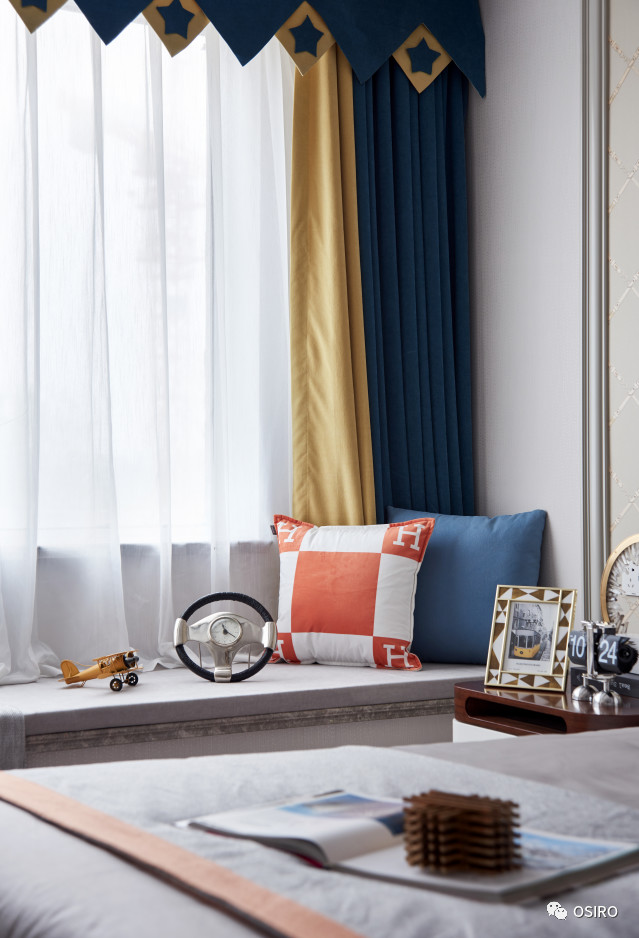 飘窗垫上航海主题的饰品摆件无不呈现出小主人公通往畅想世界的向往。